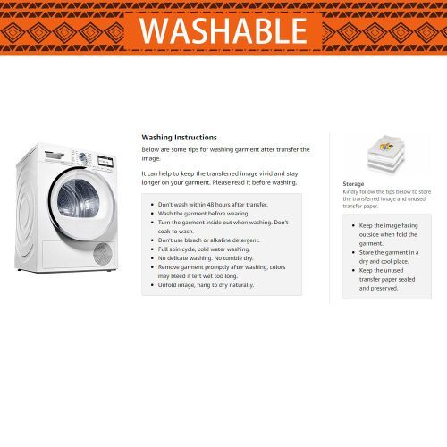 1.Keep the image facing outside when fold the garment. 2.Store the garment in a dry and cool place.3.Keep the unused transfer paper sealed and presser