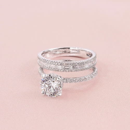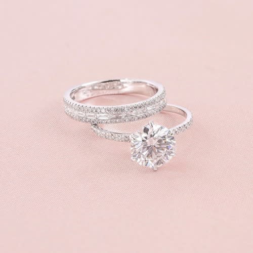 Buy Inlaid Zircon Double Layer Geometric Wedding Ring Set in Nigeria