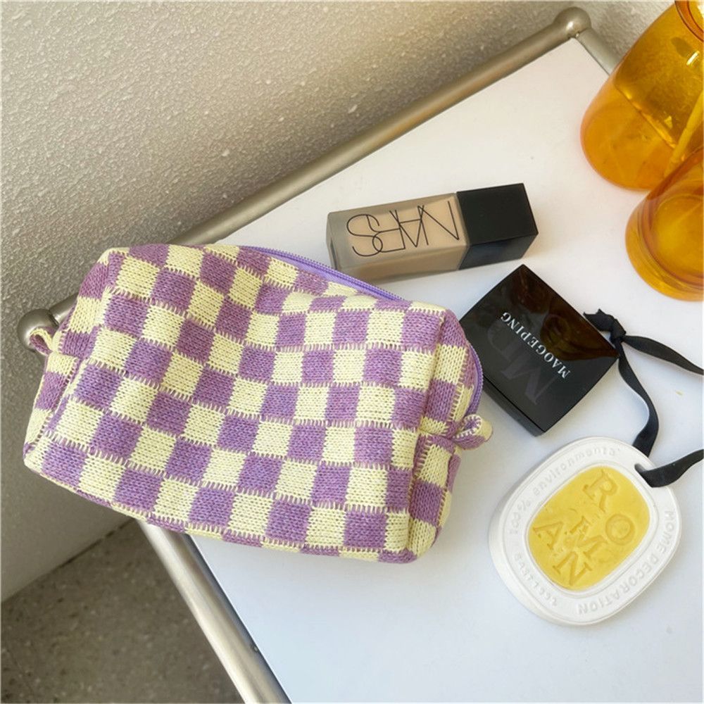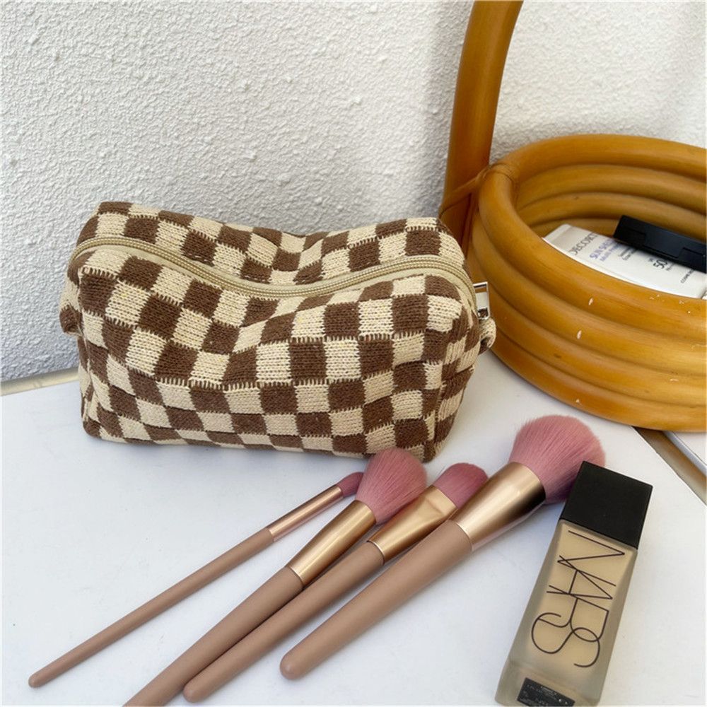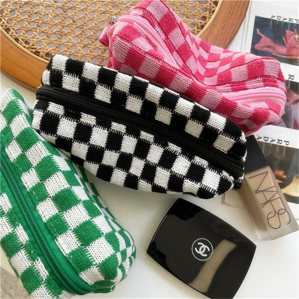 Korean Ins Checkerboard Knitted Cosmetic Cases For Women Ladies Large Capacity Lattice Makeup Bags Plaid Beauty Organizer Pouch