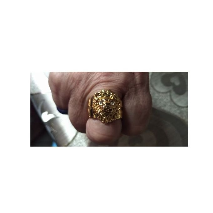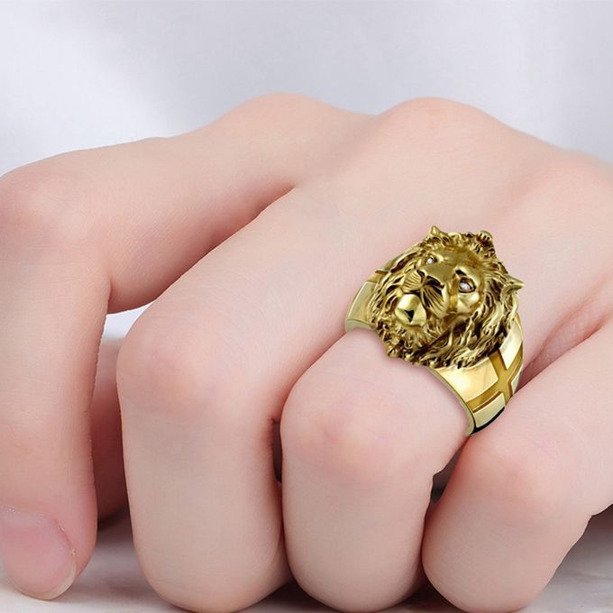ins hot Golden lion head diamond geometric men's ring x1