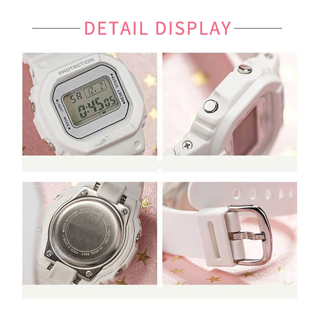 Function: adjustable strap, electronic watch, luminous, alarm clock, time, date, chronograph