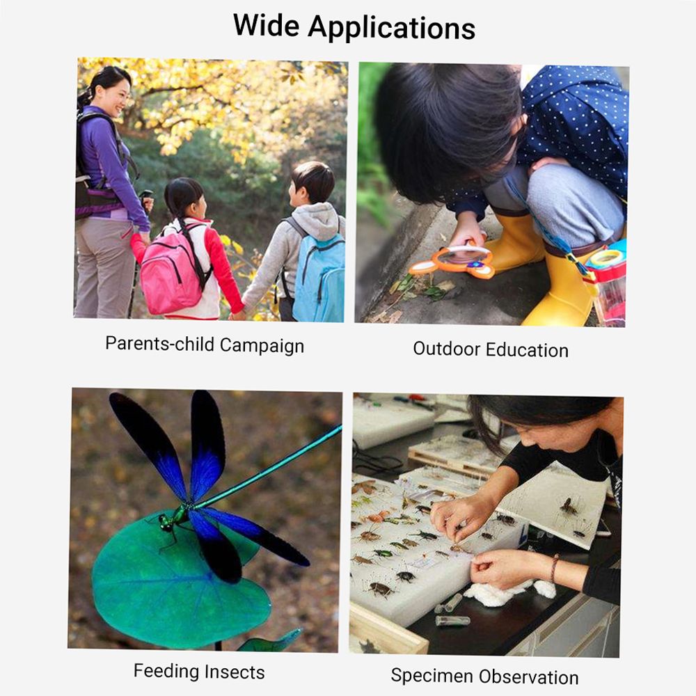 Focal Distance Adjustable: the focal length of both magnifying lens can be adjusted to meet the demand of different observing insects. Besides, the side magnifier can be move up and down if needed.