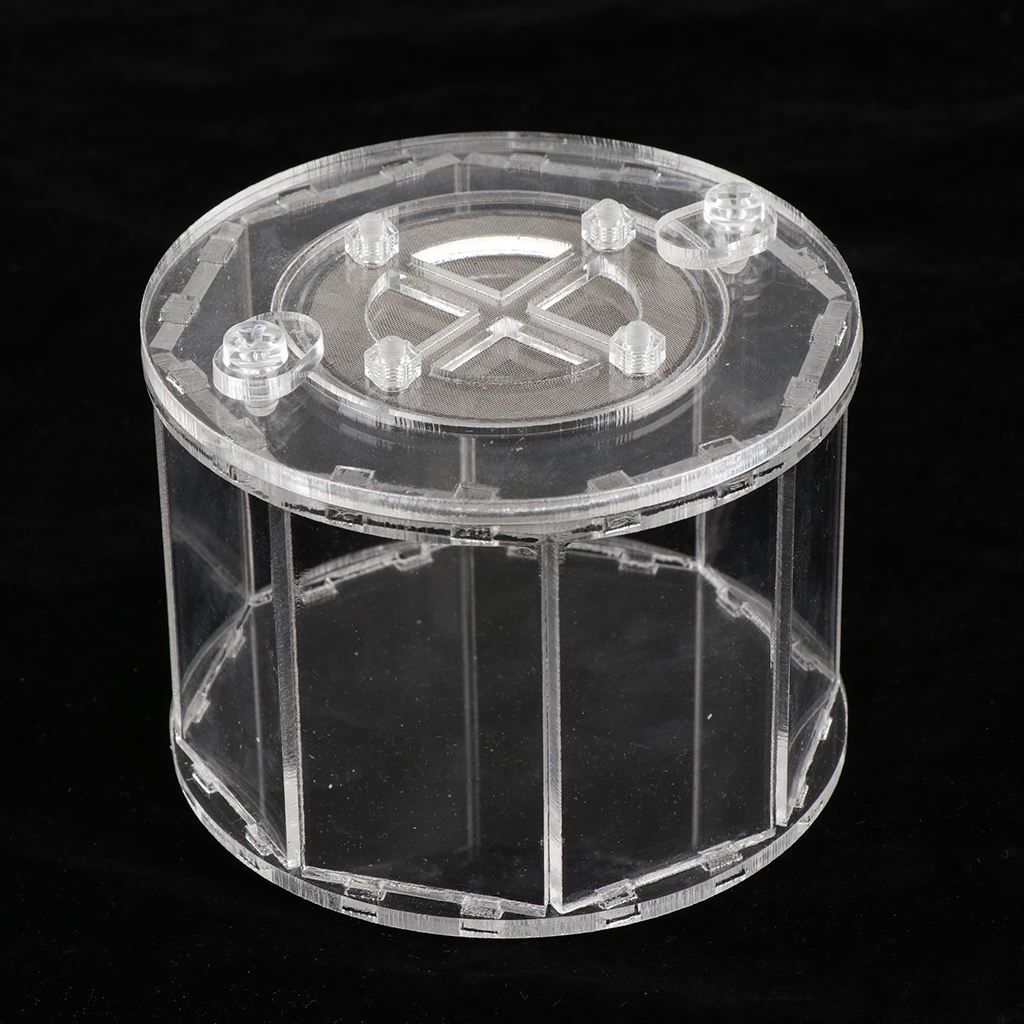 Acrylic material,durable for long time use.Small size, lightweight, easy to carry. Suitable for Grasshopper, Cricket or other insects. stylish round vents, giving insects a comfortable environment.Transparent box allow you to better enjoy the sight of tank.