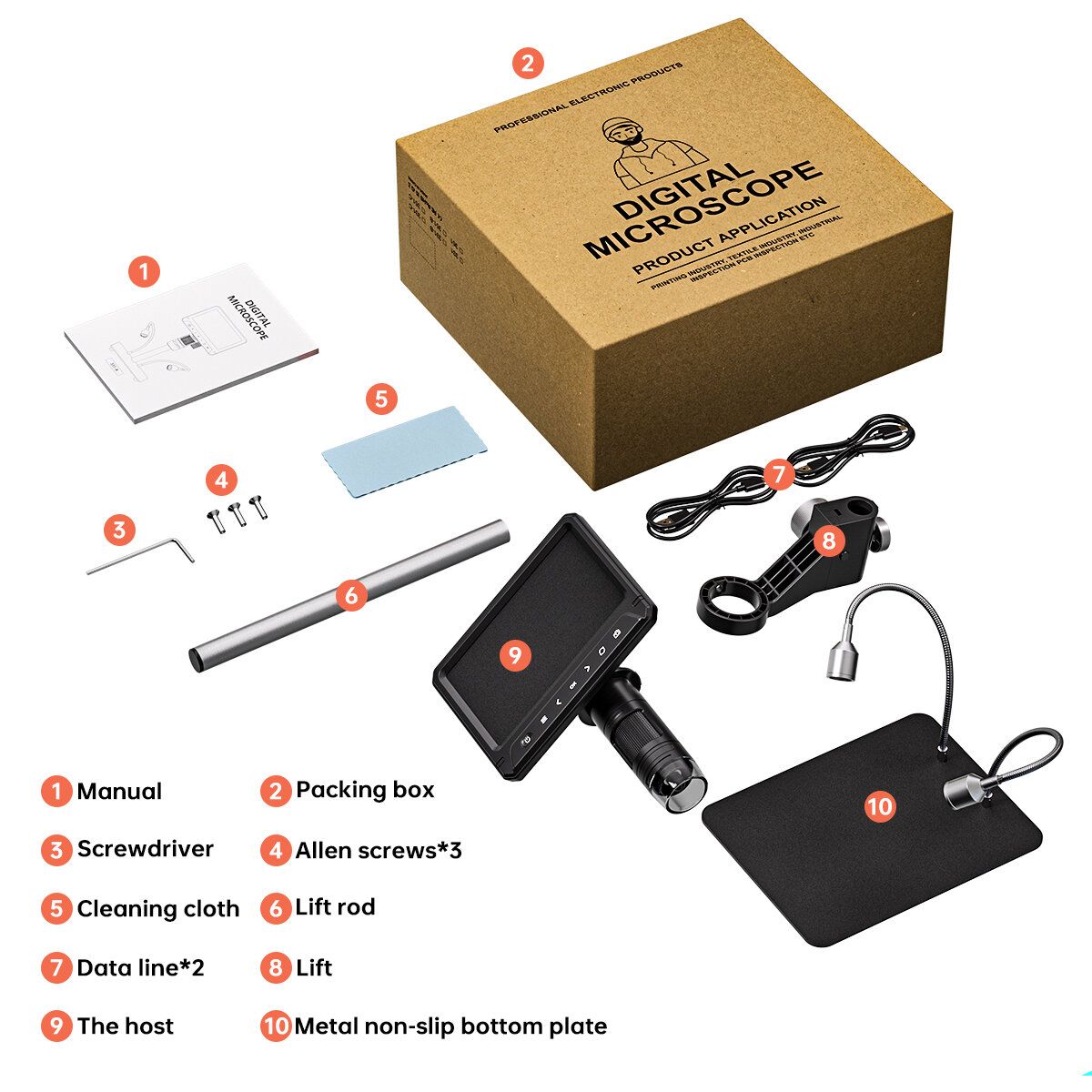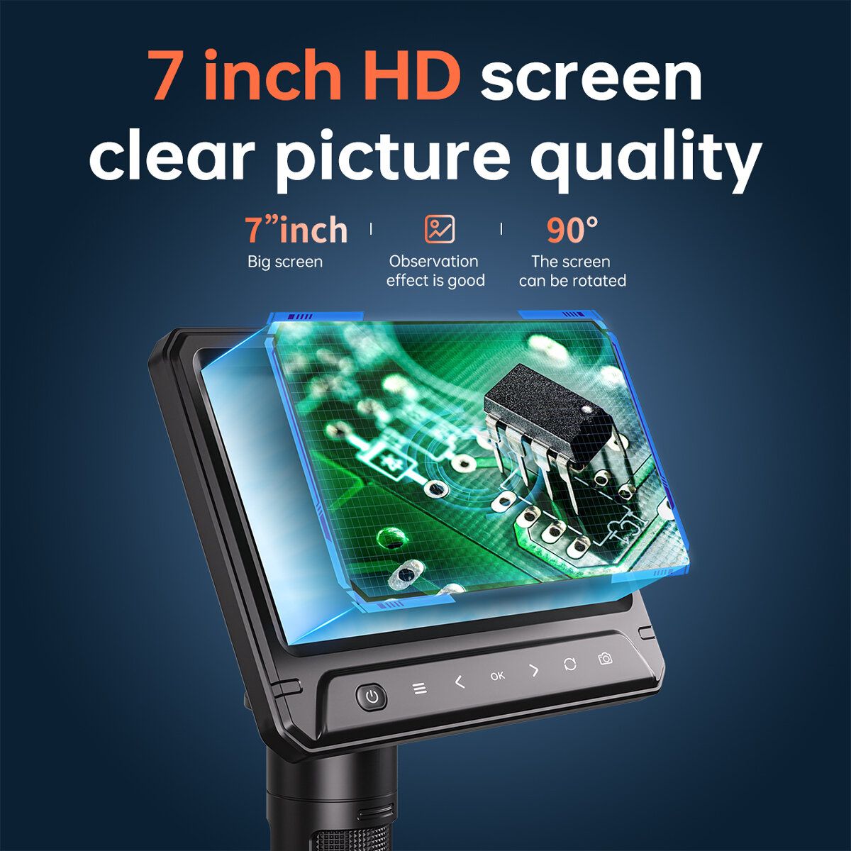 Specifications:Lens pixels: 12.0MPMagnification: 1600 times;Focusing mode: ManualFixed focal length: 2-60mmVideo resolution: 1920*1080PPhoto resolution: 4032*3024PVideo format: MOVPhoto format: jpgScreen size: 7.0\\\' IPSScreen resolution: 1024*600POperating system: Windows XP. s vista/7/8/10/11. Macintosh OS times; 11.0 or higherTF capacity: Support expansion 0-128GBInput voltage amp; current: 5V/2ABattery capacity: 3000mAh lithium batteryOperating time: 2 hrsCharging time: 3 hrsOperating temperature: -10℃ ~ 50℃Camera working temperature: -15℃ ~ 75℃Light source: Two 3W high-brightness LED lights (brightness adjustable).Languages: Simplified Chinese / Traditional Chinese / Japanese / English / Korean / French/ German / Spanish / Italian / Russian / Polish