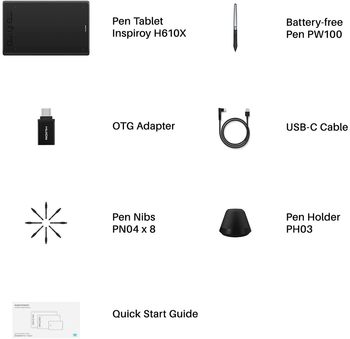 - Compatibility - H610X is compatible with not only Windows 7 and above, macOS 10.12 and above, but also Chromebook (running the latest ChromeOS 88 and above) and Android devices (OS 6.0 and above). It also supports online class and digital painting in most programs including Adobe Photoshop, SAI, illustrator, corel draw, corel painter, sketchbook, Huion Sketch and more