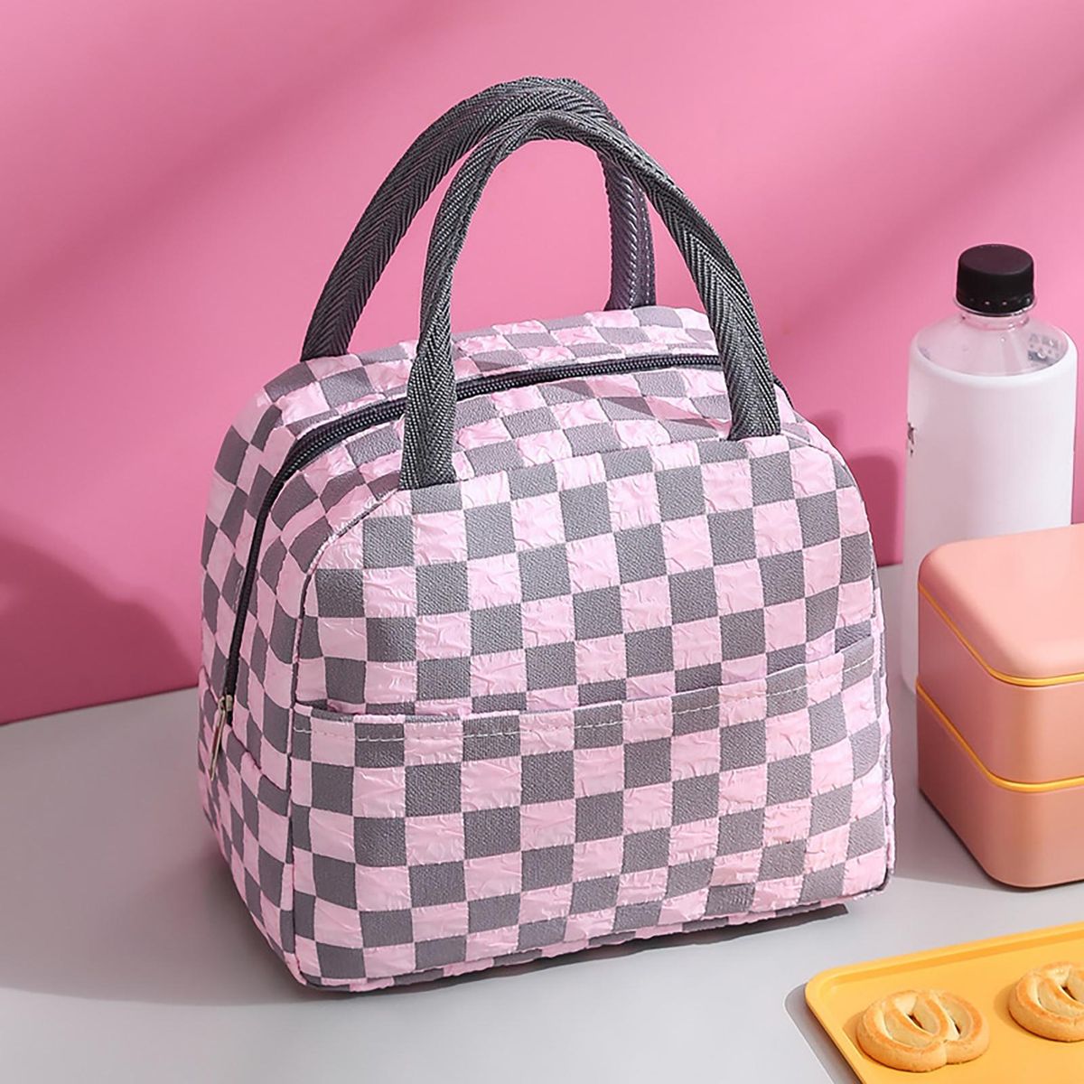 Buy Insulated Bag Plaid Pattern Lunch Bento Box Bag Pink in Nigeria