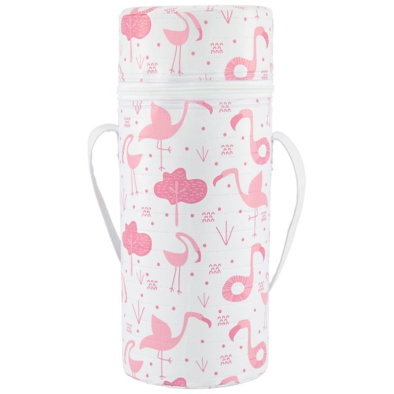 This printed insulated bottle bag makes feeding on the go easier and stylish.