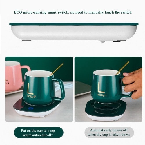 Buy Insulated Ceramic Coffee Mug With Heating Pad - Cover & Teaspoon - 16W - Green in Nigeria
