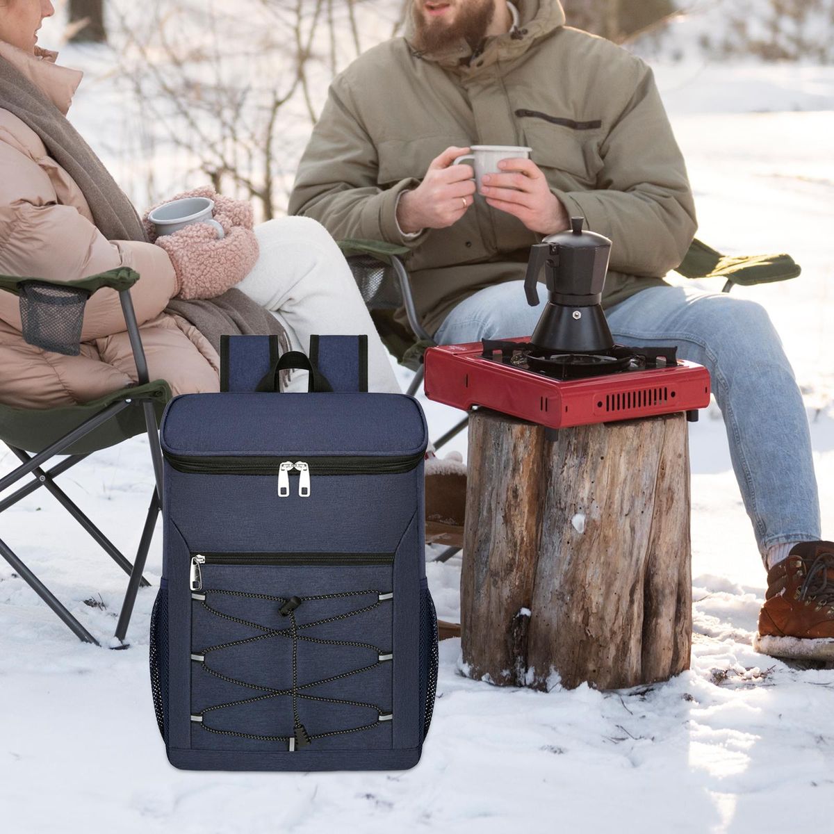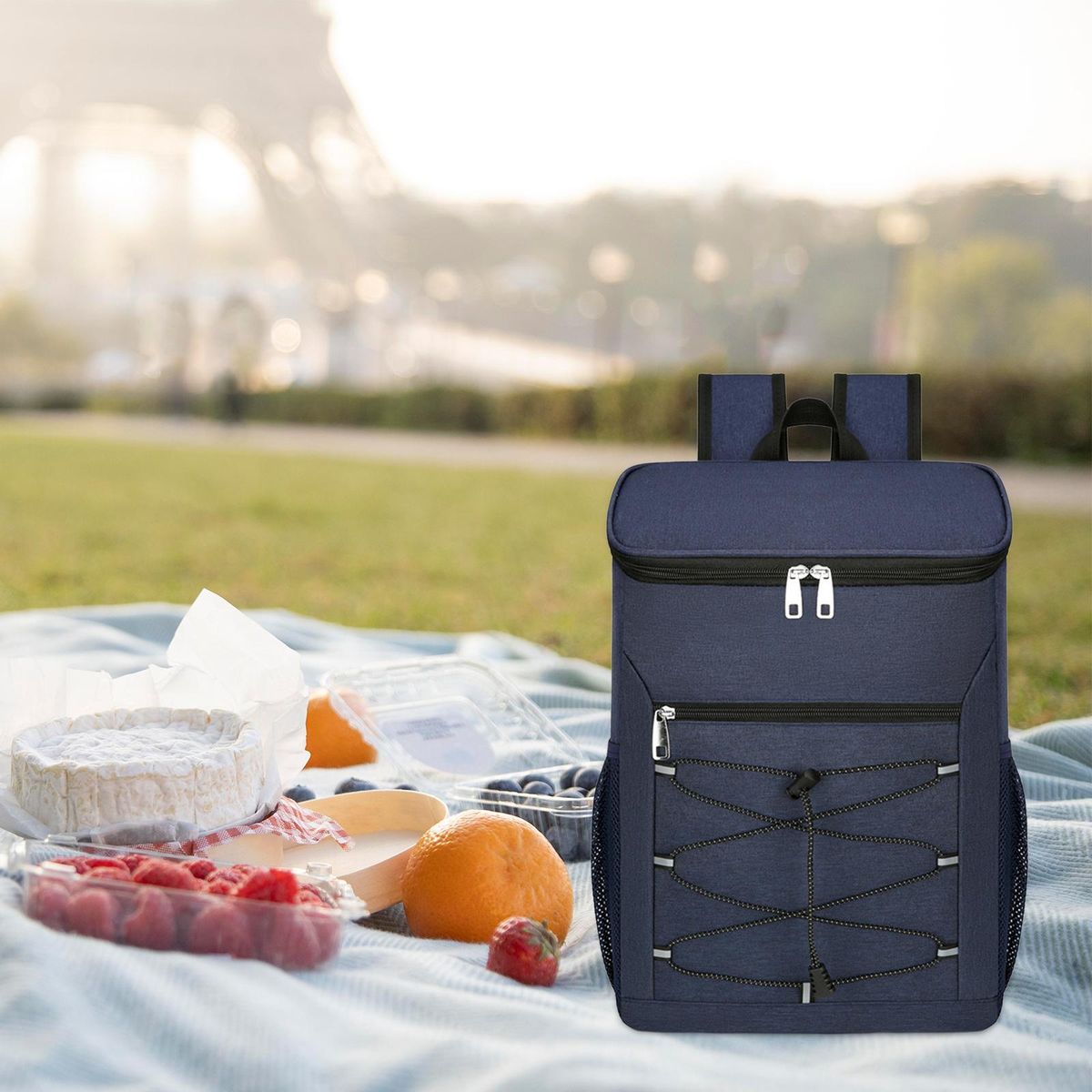 【Design】: The insulated bag keeps beverage cooling, and picnic backpack keeps food fresh or warm. With night reflective strip, safety at night, is more convenient. Top handle webbing, easy to carry. Stretch nylon cord on the front to secure bandana towels.