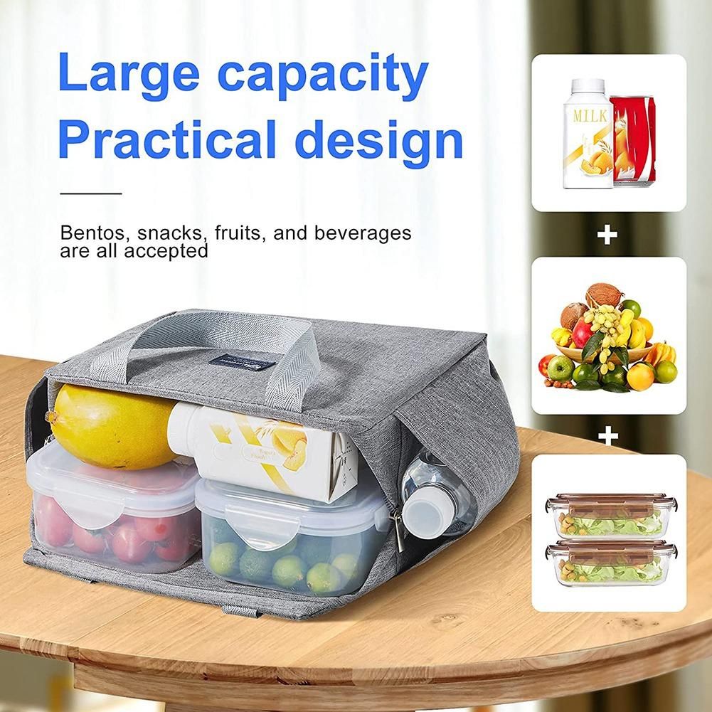 Detailed Information About The Product:LARGE CAPACITY & PRACTICAL DESIGN - With a size of 9.8 x 9.8 x 5.5 inch, the main compartment of our lunch bag for woman and man is designed for the maximum storage efficiency. The wide zipper opening makes it easy to put in and access to your food. There are 2 large side pockets as organizer for small stuffs, such as napkins, snack, water bottle and more.