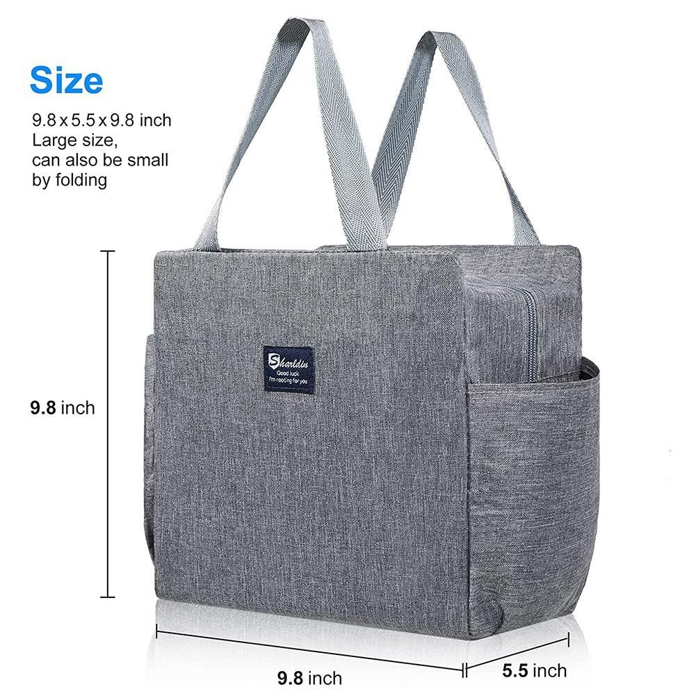 Detailed Information About The Product:LARGE CAPACITY & PRACTICAL DESIGN - With a size of 9.8 x 9.8 x 5.5 inch, the main compartment of our lunch bag for woman and man is designed for the maximum storage efficiency. The wide zipper opening makes it easy to put in and access to your food. There are 2 large side pockets as organizer for small stuffs, such as napkins, snack, water bottle and more.