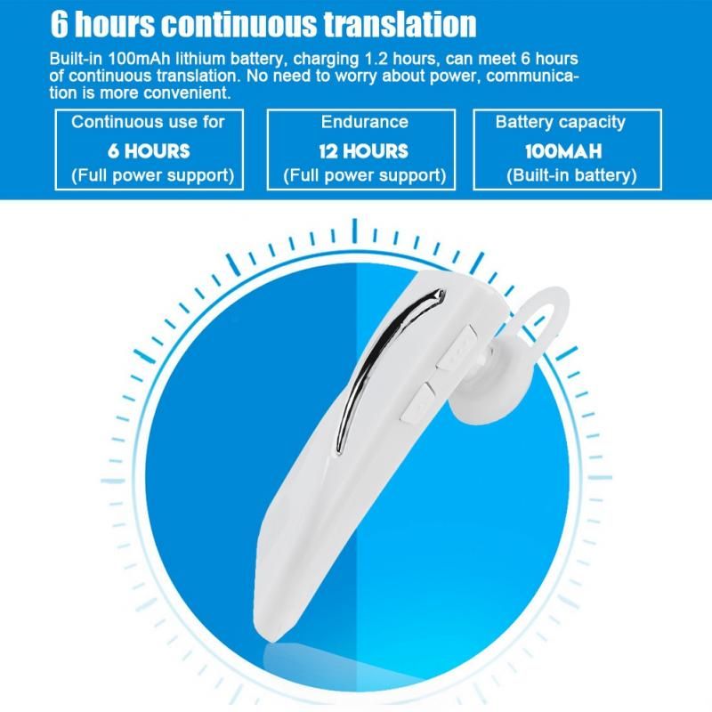 This is a translation headset, providing real-time simultaneous interpretation through the APP. The headset has A2DP and HFP functions, and adopts the latest 50 chip with BLE function, which is perfectly compatible with Android and IOS operating systems.