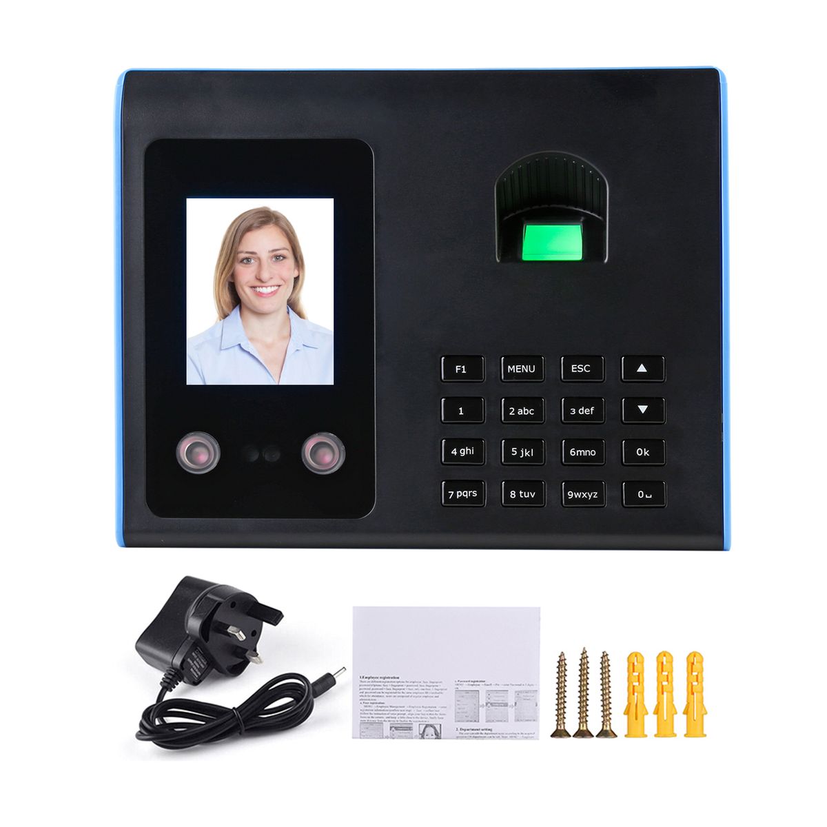 Huge storage space -- 500 face records, 1500 fingerprints and 300000 records memory capacity.