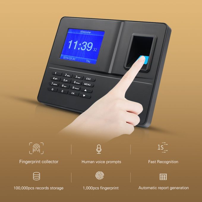2 Attendance Modes- Support fingerprint and password authentication mode. Adopting membrane-free fingerprint collector, 360 degree accurate identification of your wet and dry fingers.