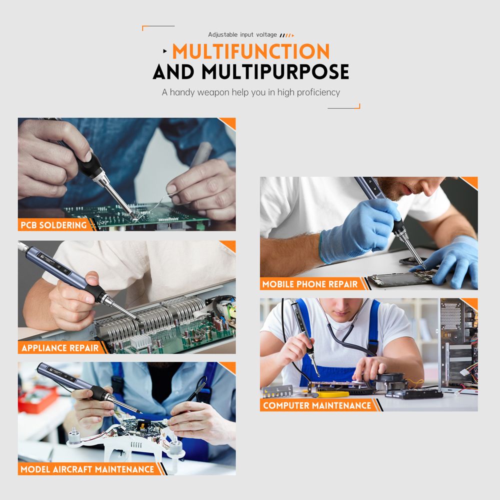 65W High : Internal heat type integrated iron head, 6s quick temperature rise and 8s melting tin. Using a premium heating core to ensure heating and temperature return speed while having a large heat capacity value, can meet multiple usage scenarios.