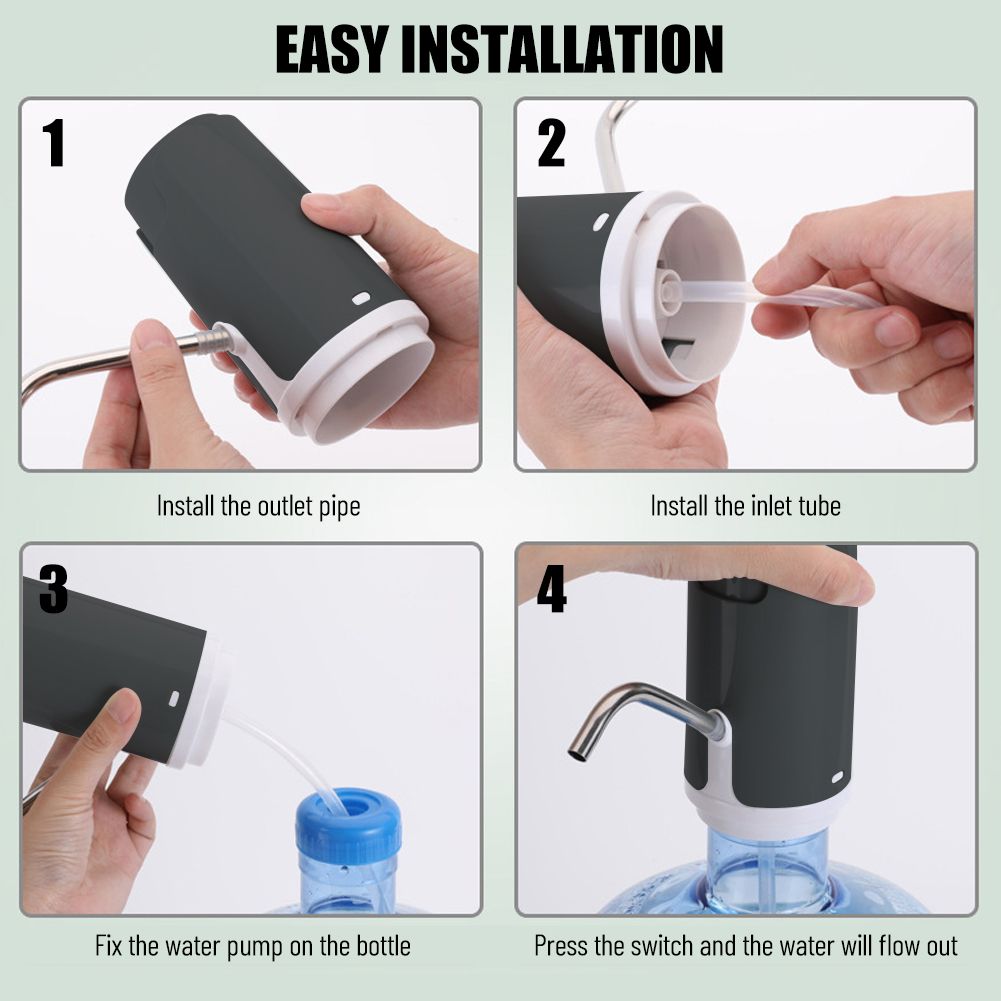 The water pump is quite easy to operate. Noiseless and equipped with instructions, it can be easily used by both the elderly and children.[COMPACT & PORTABLE] Measuring around 13*7cm / 5.12*2.76in and weighing only 165g / 5.82oz, this water pump is small in size and easy to carry. Therefore, it is not only suitable for home use, but also for outdoor use. It's so convenient to carry around for camping, hiking, traveling and other outdoor activities.[REMOVABLE SILICONE TUBE] The stainless steel outlet pipe and silicone inlet tube is detachable for easy cleanup. And the noise-free design will bring you a better sense of use.