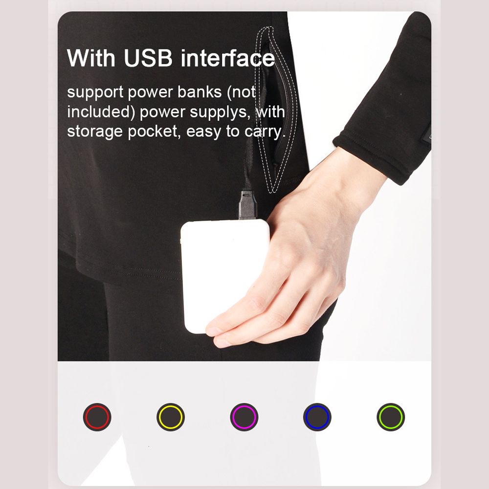 The button supports 5-level temperature control, one-key switching, to meet your different needs. With USB interface, support banks (not included) supplys, with storage pocket, easy to carry.