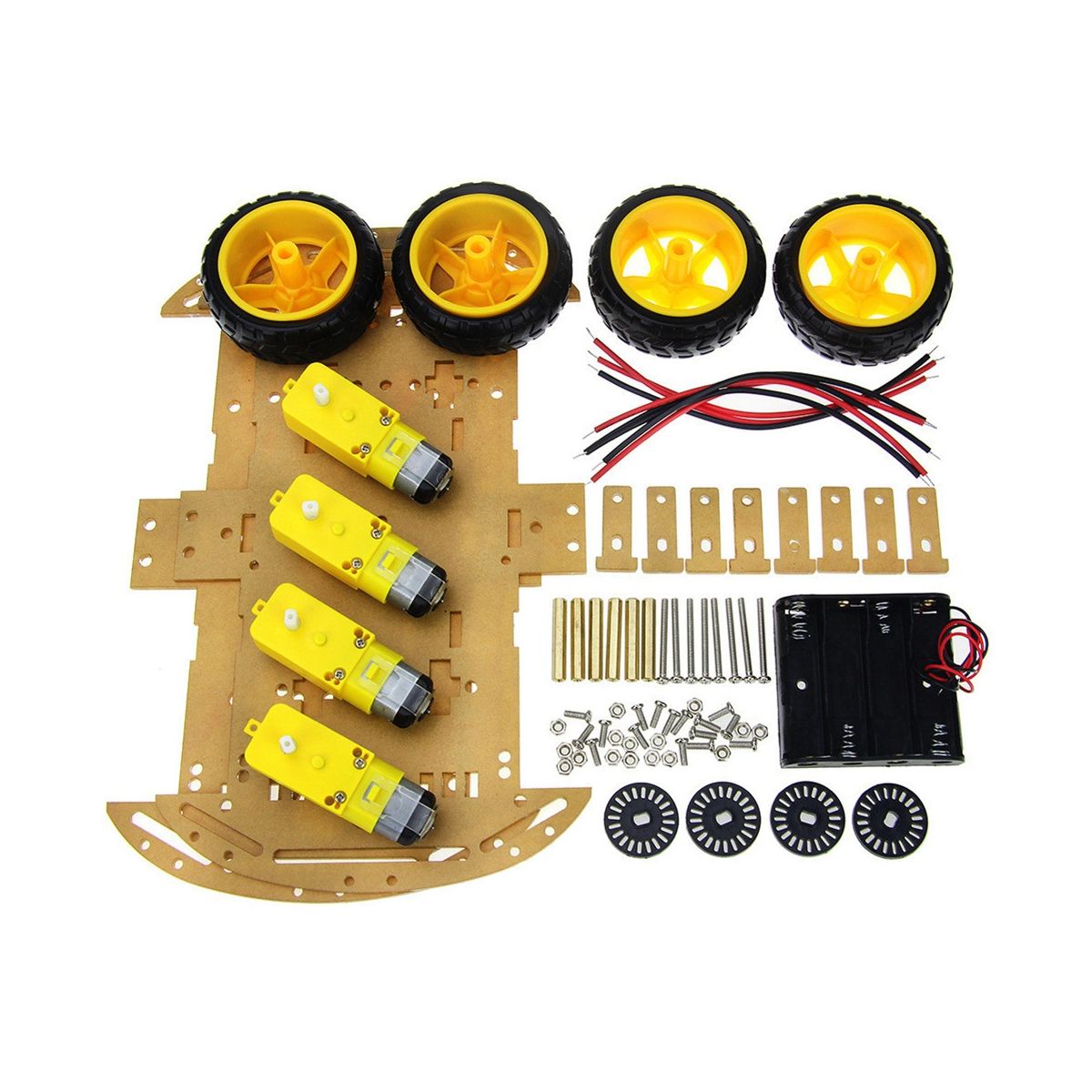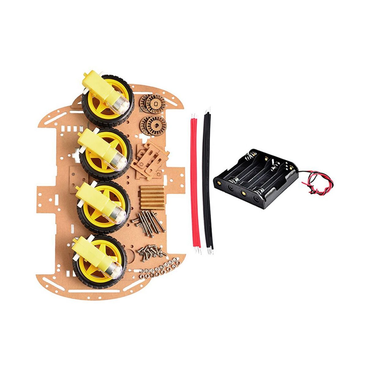 2. Four deceleration DC motors are used for flexible turning and good directionality. Four-wheel drive, full of horsepower. The chassis is large and stable, very easy to expand