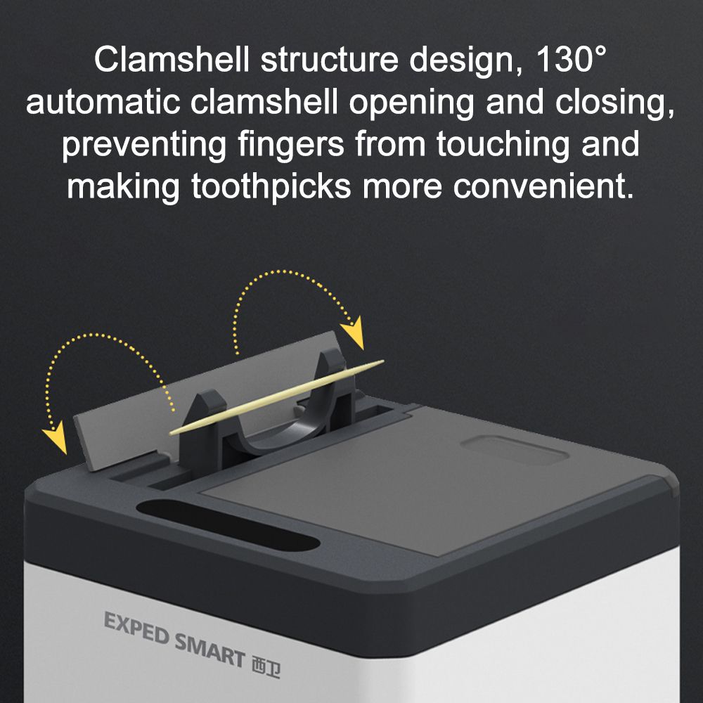 Induction flip to prevents tentacles. Clamshell structure design, 130 deg; automatic clamshell opening and closing, preventing fingers from touching and making toothpicks more convenient.