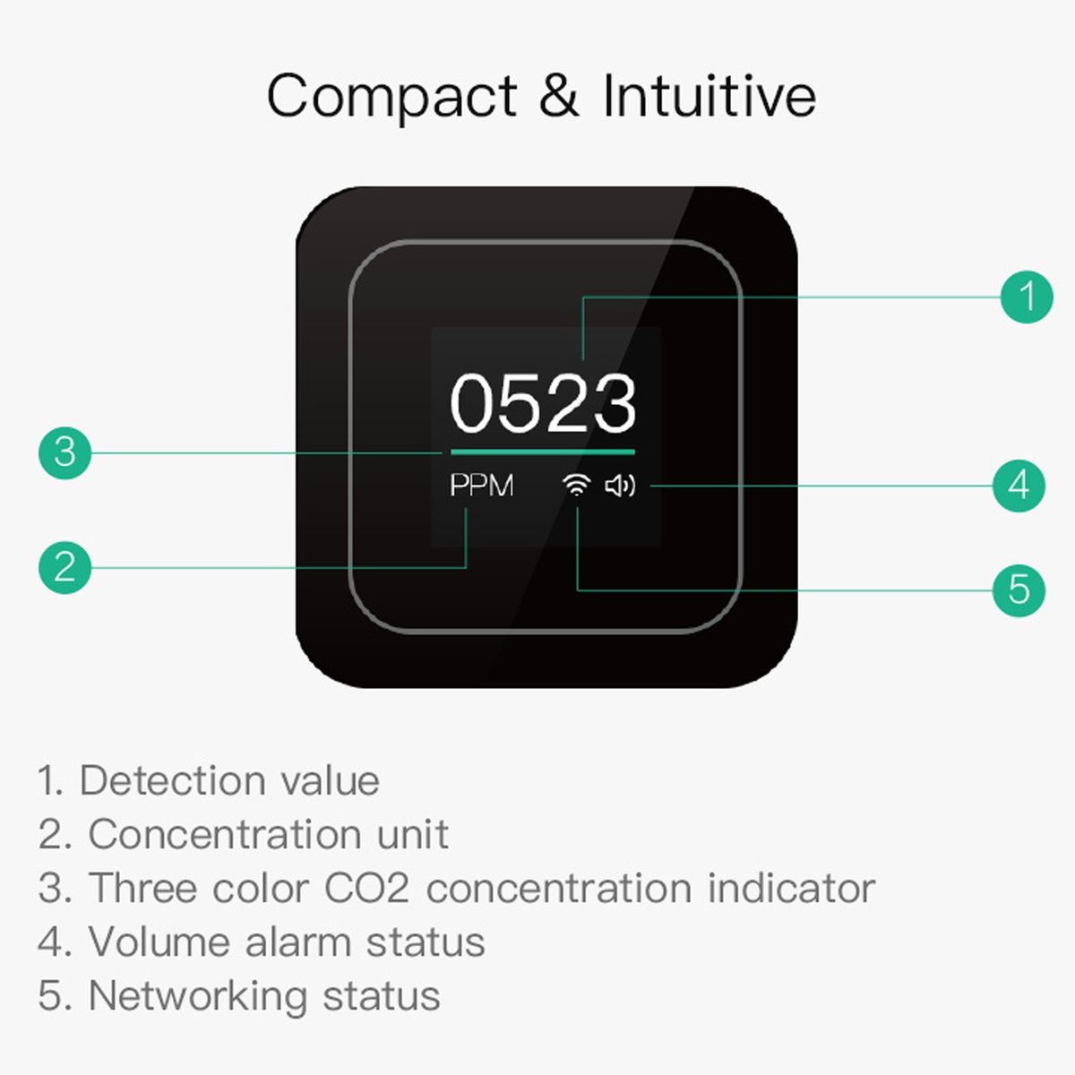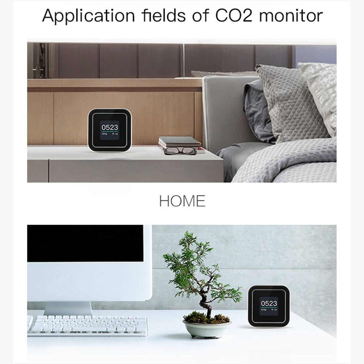 It can not only detect the CO2 for you, but also can shows the times and weather for you. (the time and weather display need to connect with the internet to achieve)