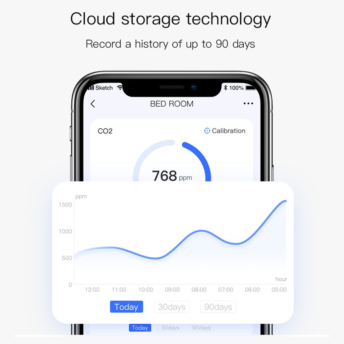With three different color CO2 concentration indicator(can be set on the app): the green means 1500ppm.