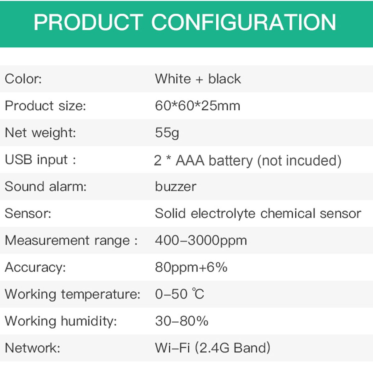 Measurement ranges: 400~3000ppm