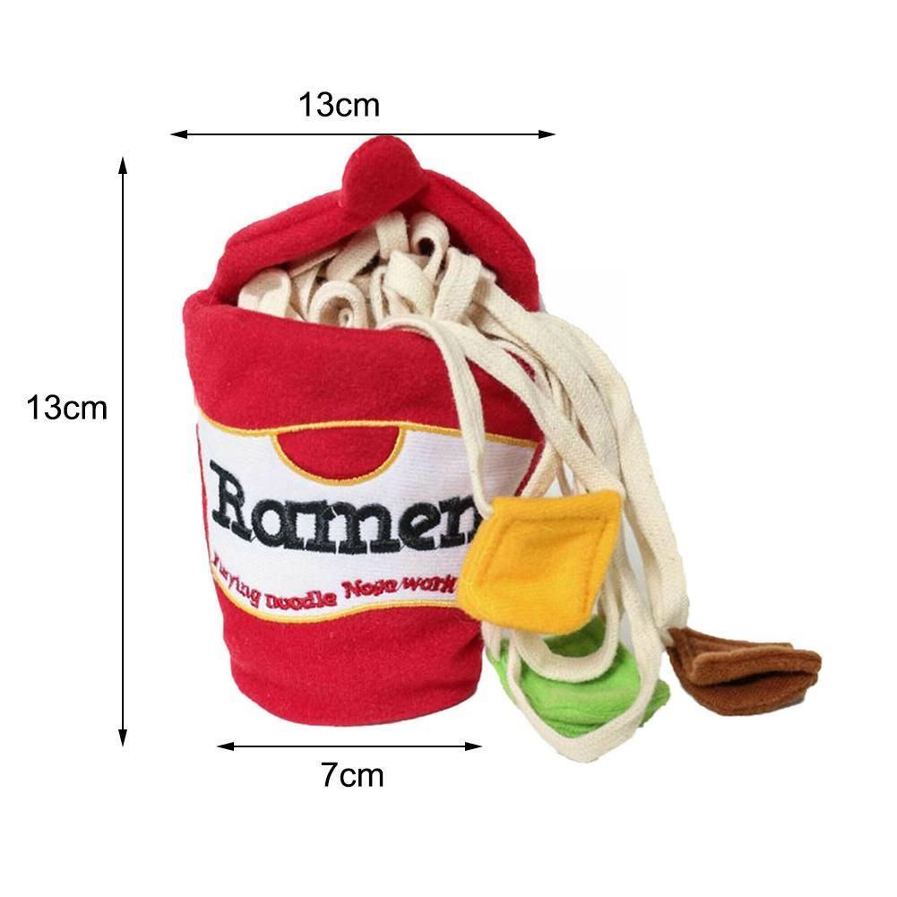 Feature: Sprinkle snacks on the ramen dog toy, in the ramen bowl, or between the noodles. Encourage dogs to use their natural sense of smell to find food and drive their natural foraging instinct. Dogs like this kind of ramen toy because they can always sniff out snacks and get snacks from what they eat. This toy can also stimulate the dog's brain, and your dog will never get tired of finding snacks in it. Made of high-quality fabric, soft, safe and durable, suitable for slow-feeding pet games. Specification: Project Type: Interactive Pet Nose Toy Material: cloth Red Top diameter: 13cm/inch Bottom diameter: 7cm/inch Product height: 13cm/inch Notes: Due to the slight color difference between manual measurement and different screen settings, please allow a difference of 1-3 cm (0.4-1.18 inches). Packing list Package Included: 1 * Interactive dog nose work toy