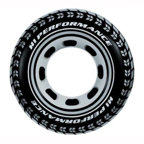 Do you think it is a tyre for cars? No, you're wrong. It a black and inventive tyre style swimming ring. It is made of environmental PVC material, which makes you safer in water, and it suits every body size and weight to the tone of 100kg