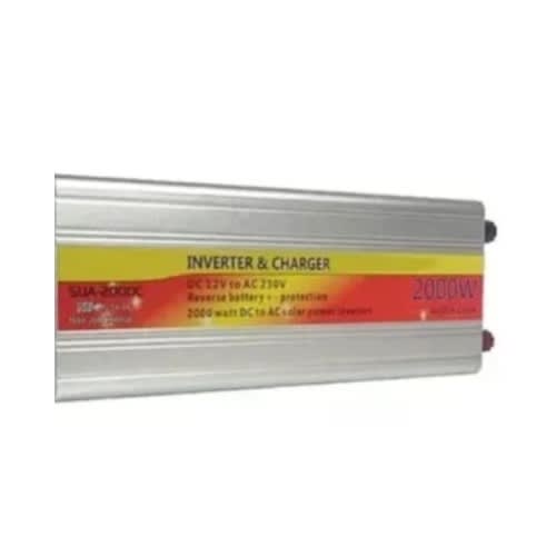 nput voltage 12v. Output voltage 230v. Rated power 1000. Efficiency & gt;80%. Durable metal housing provides advanced protection from drops and bumps. Integrated cooling fan helps reduce heat and prevents shortages. [Protections].Overload protection. Input over voltage protection. Over-temperature protection. DC 5V USB output 2000W DC 12V to AC 230V Low standby power cost Multiple safe protection High coversion effeciencyUniversal output socket Intelligent cooling fan controlled by the workload This power inverter is extraordinarily designed for home use,which can convert DC 12V/24V of portable power supply to AC 110V/220V/230V and it works for almost all the household electrical resistive appliances such as MP3/MP4 player,cell phone, laptop, emergency light, electric blanket, electric shaver, electric cooker,digital camera, digital video,CD/DVD player,XBOX/PS4 game player, ordinary electric lamps, bulb,fluoresent light, rice cooker,electric iron,desktop computer, graphoscope,fax machines, printers, LCD TV, electric fans, cell phone chargers, electric iron , drinking fountain,hair dryer and so on.(Note:Only pure sine wave inverter can run sensitive electric appliances that are including refrigerator, washing machine,microwave oven, induction cooker, electric drill,compressor,air conditioner,mercury lamp, sodium lamp and so on).