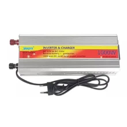 Inverter 1000 Watts without chargerInverter is a device that converts electricity to volts for use in a variety of devices that require volts.Generally, the inverter is used in places where it does not have access to power and supplies one or more batteries and connecting them to the inverter.This device is used in solar systems and the batteries are powered by solar panels and the required power from the inverter.It should be noted that inverters are divided into two groups:pure sine wave and modified sine wave modified sine wave like inverters are commonly used for devices such as the lighting of lawyers, which do not have a motor system,And in vehicles equipped with motorized systems, pure sine wave inverters are usedThis power inverter is extraordinarily designed for home use,which can convert DC of portable power supply to AC and it works for almost all the household electrical resistive appliances such as MP3/MP4 player,cell phone, laptop, emergency light, electric blanket, electric shaver, digital camera, digital video,CD/DVD player,X BOX/PS4 game player, ordinary electric lamps, bulb,fluoresent light, desktop computer, graphoscope,fax machines, printers, LCD TV, electric fans, cell phone chargers, drinking fountain,hair dryer and so on.Input voltage 12v. Output voltage 230v. Rated power 1000w.Efficiency & gt;85%.Durable metal housing provides advanced protection from drops and bumps. Integrated cooling fan helps reduce heat and prevents shortages. [Protections].1.Overload protection .2.Input over voltage protection. 3.Over-temperature protection . Input voltage 12v. Output voltage 230ll Ratedpower 3000w.Efficiency & gt;85%.Durable metal housing provides advanced protection from drops and bumps. Integrated cooling fan helps reduce heat and prevents shortages. [Protections].1.Overload protection .2.Input over voltage protection. 3.Over-temperature protection 1.High conversion efficiency, smart soft start function. 2. Multiple safe protection . 3. Input and output are completely independent. 4. Smart, light, and portable, designed for home use. 5. Universal socket, suitable for all kinds of plugs. 6. High-precision voltage stability technology.Input voltage 12v. Output voltage 230v. Rated power 3000w.Efficiency & gt;85%.Durable metal housing provides advanced protection from drops and bumps. Integrated cooling fan helps reduce heat and prevents shortages. [Protections].1.Overload protection .2.Input over voltage protection. 3.Over-temperature protection . Input voltage 12v. Output voltage 230ll Ratedpower 3000w.Efficiency & gt;85%.Durable metal housing provides advanced protection from drops and bumps. Integrated cooling fan helps reduce heat and prevents shortages. [Protections].1.Overload protection .2.Input over voltage protection. 3.Over-temperature protection 1.High conversion efficiency, smart soft start function. 2. Multiple safe protection . 3. Input and output are completely independent. 4. Smart, light, and portable, designed for home use. 5. Universal socket, suitable for all kinds of plugs. 6. High-precision voltage stability technology.