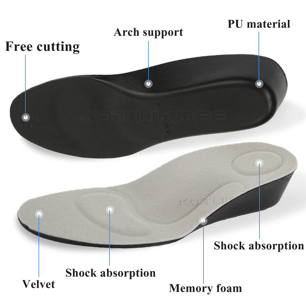 Details:EU Size: S 34-40/ L 40-48. Length: S 25.5/ L 29(cm)Material: friendly Velvet, Soft Memory Foam, Shock-absorbing PU. Color: Gray and Black4 height of your choice: 1.5/ 2.5/ 3.5/ 4.5(cm)Increasing your height in seconds with Heel Lifts PadsUltra Comfortable design, suit for standing a long timeFeatures:Shock absorbing heel and forefoot paddingInvisible height increase and instant tallerAppear taller, feel taller and finally be tallerStoma design allows better air circulation inside your shoesShock-absorbing design protect your foot and ankleComfortable design reduces foot preure for heel, suit for standing a long timeFull-size design provide better support and make your feet more comfortableReduces preure on foot when walking or engaging in physical activityFit many kinds of shoes, unisex, fit most of sizesNote:If there are any problwhen you receive the package, please contact us before leave any feedback. We will solve it for you patiently.Package Include:1 pair of Height Increasing Insole
