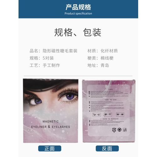 /Product Description:Product category: false eyelashesMaterial: chemical fiberProduction process: pure handmadeItem: Invisible magnet eyelashesSpecifications: 001,002,003,006,007/