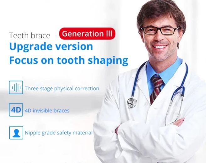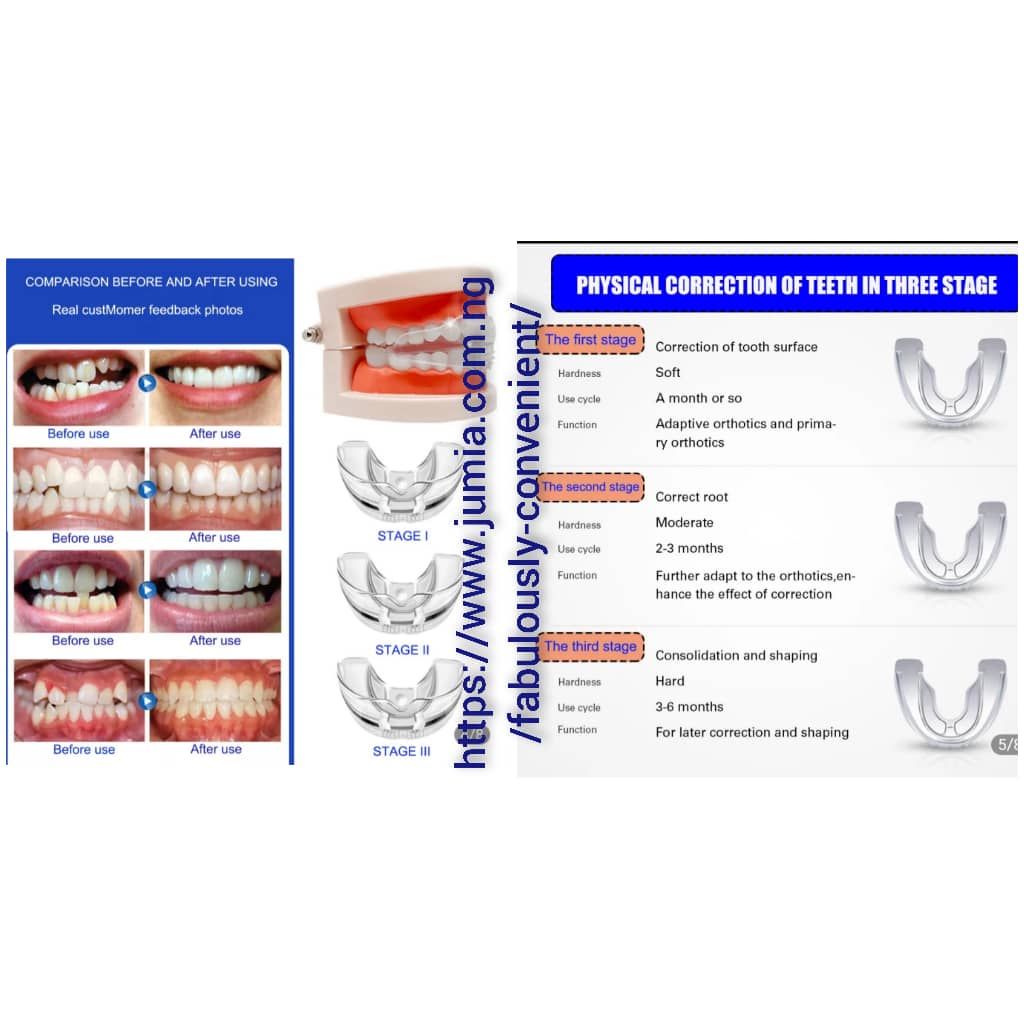 Have you always be unhappy with your teeth and wished you had perfect teeth and smiles but the high cost of fixing braces has made the dream of having a perfect smile almost impossible. Worry no more, because this 4D silicon braces will give you same result of a professional installation at almost no cost when compared to the million of naira required to get one done by a dentist.Its easy to install and result is very invisible after using fir the stipulated time. Material is FDA safe and can be used by both children and adult.