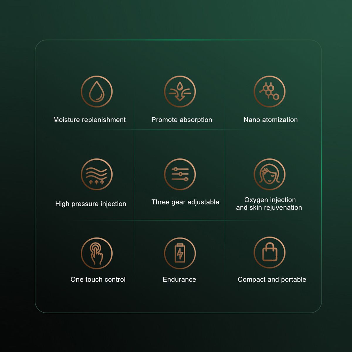 - Fine Atomization: The facial oxygen machine can disintegrates diluted high viscosity water-based skin care products into nanospray, mix with oxygen, deeply hydrating and nourishing your skin.