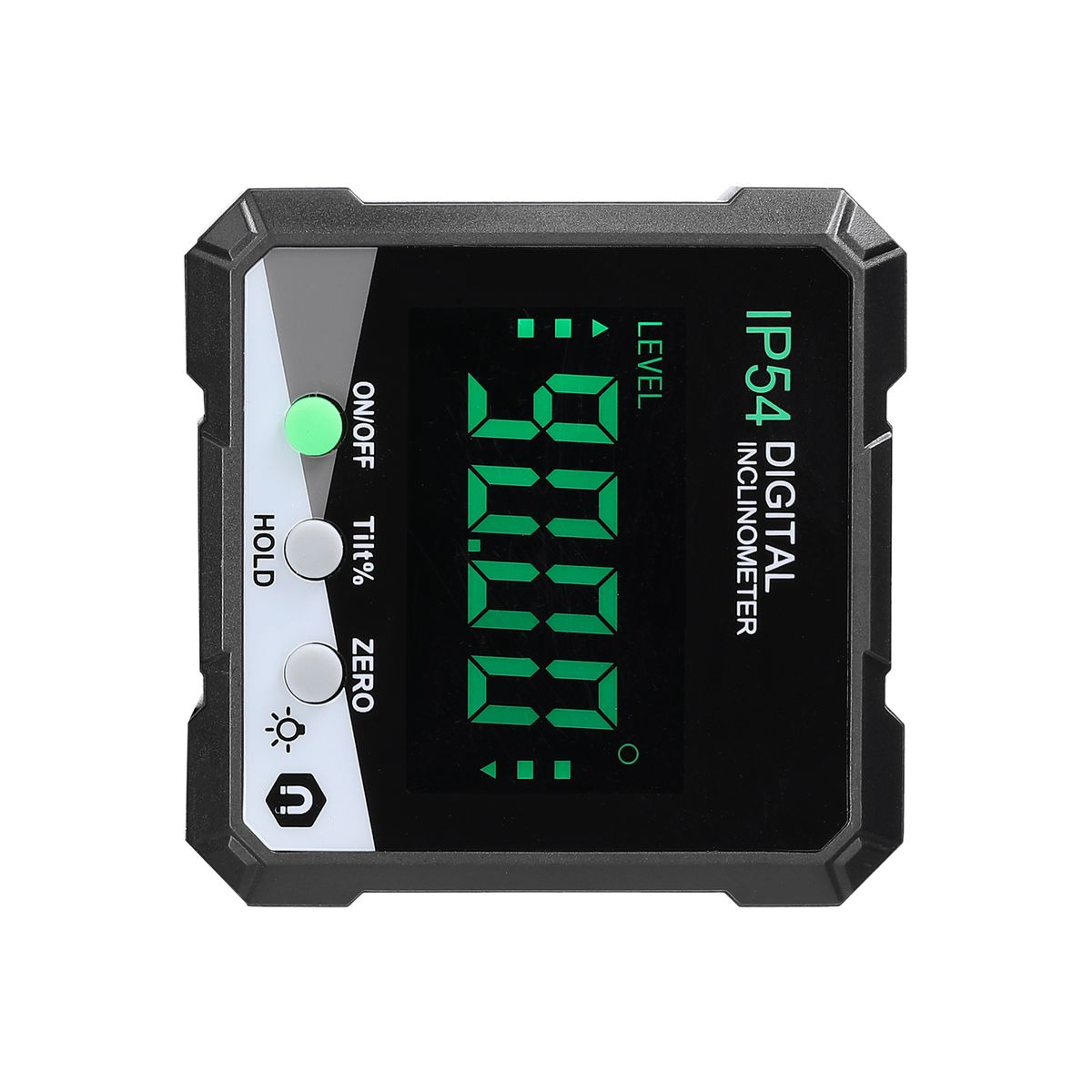 This portable and high precisions digital inclinometer with the LCD backlight digital display screen, so you can see the number more clear. With the IP54 waterproof and dustproof level, with the data hold function. Come on and try it, it will not let you down.