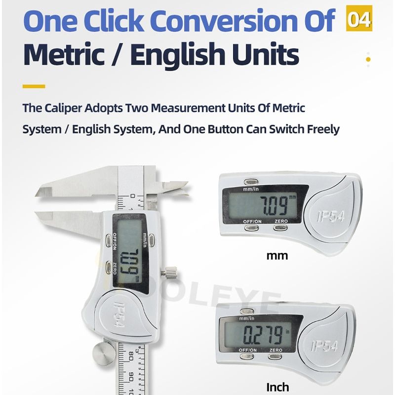 IP54 Digital Caliper Metal Ruler Gauge Stainle Steel Electronic Vernier Calipers Micrometer Depth Measuring Tools 6In/150mm