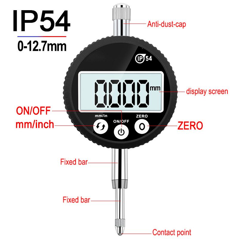 1X IP54 waterproof digital indicator 0-12.7mm 0.001mm 0.00005 "Electronic Micrometer Metric Inch Dial Indicator Gauge