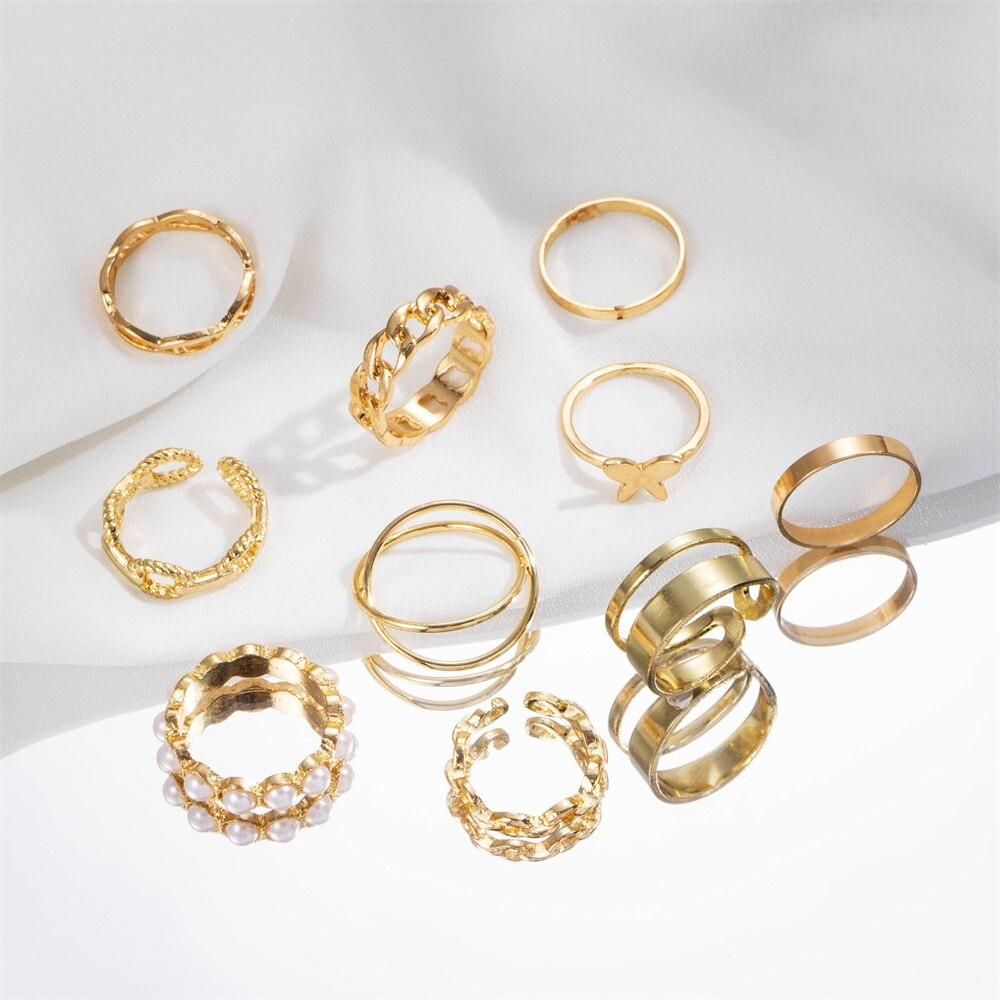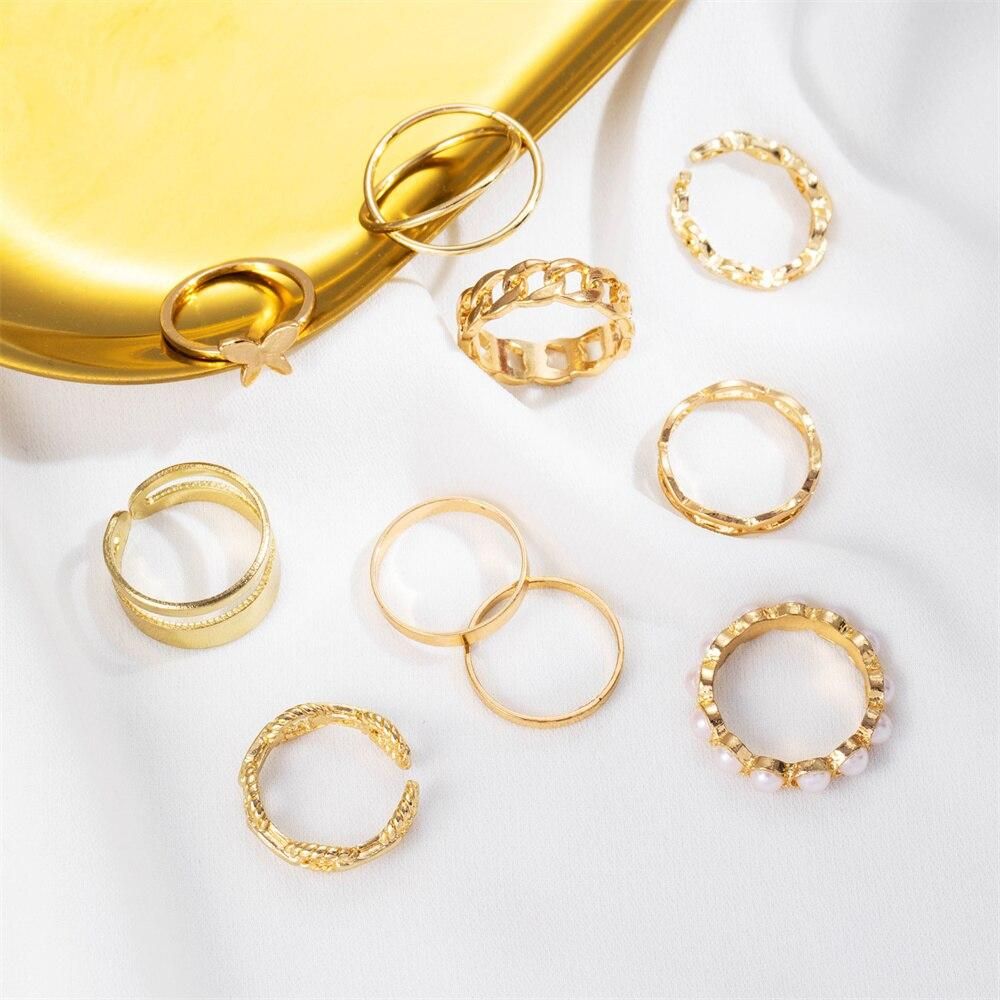 Buy IPARAM Bohemian Geometric Hollw Out Wide Ring Set Women's Vintage Butterfly Circle Joint Ring Boho Finger Rings Jewelry in Nigeria