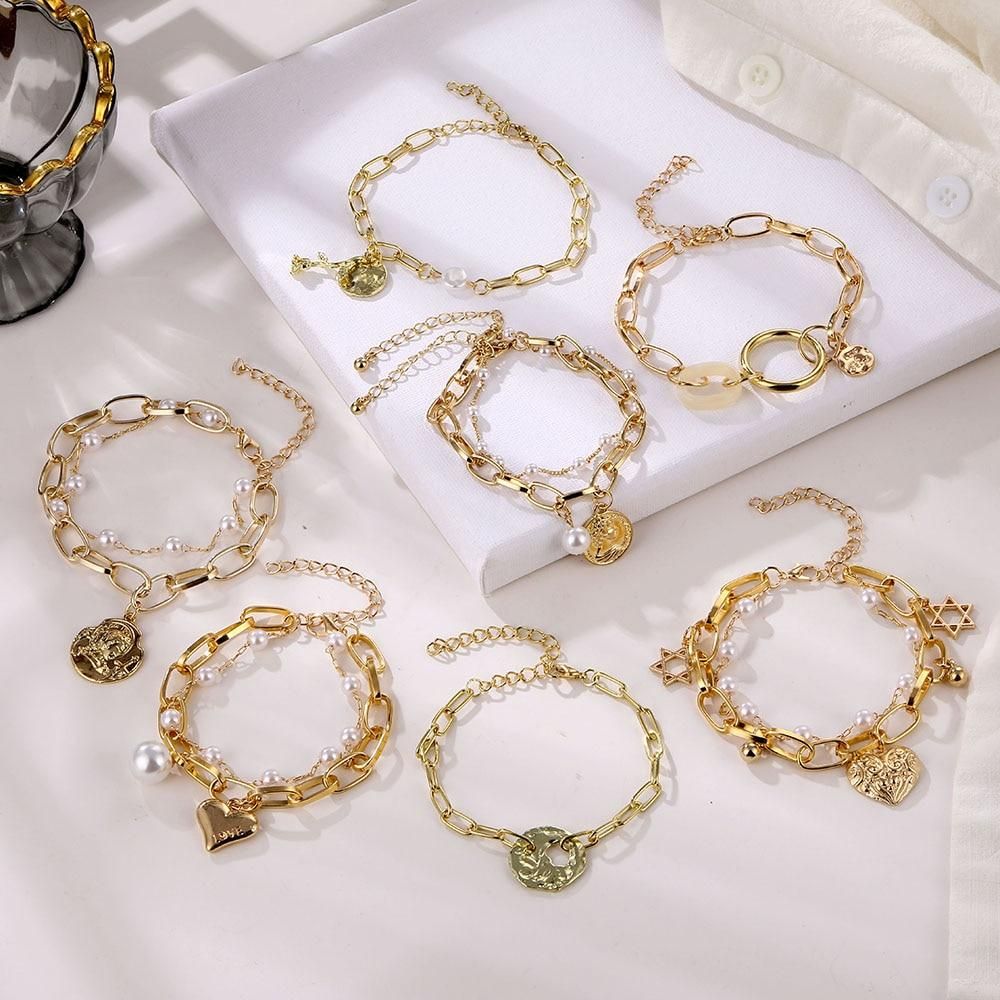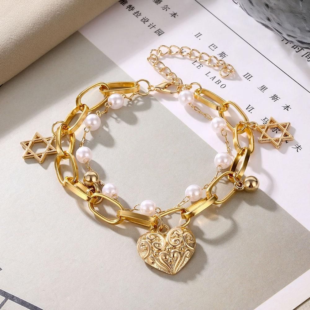 Buy IPARAM Fashion Pearl Alloy Pendant Thick Chain Bracelet for Women Charm Imitation Pearl Heart Bracelet Bangle Party Jewelry in Nigeria