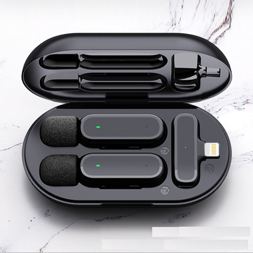 Features: 1.Active scene recognition,Newly upgraded high sensitivity microphone,With the new noise reduction solution,Record every detail of sound, high fidelity. 2. Charging bin both storage and portable, convenient for you anytime and anywhere Live streaming is convenient and quick 3. Built-in profeional intelligent active noise reduction ,Strong anti-interference ability, effective acoustic identification,Can still record clearly in noisy environment. 4. DSP can directly optimize the signal from input to output.To minimize the latency of a live broadcast, The audio effect is good enough for direct use with le noise. 5. Built-in 120mah battery, can work continuously for more than 10 hours780mah battery is built into charging bin Super long endurance can be achieved 6. Highly sensitive microphone 360° omnidirectional angle-free radio,Sound is exquisite,Record every sound detail clearly 7. Built-in optimized design,A steady signal can also be maintained from a long distance 8. Dual microphone design 8 : Profeional one drag two design,One receiver paired with two microphones,Support dual microphones live at the same time,more convenient and fast 9. 1 second automatic link,plug and play Product performance: Microphone: digital silicon mark Input voltage: 5V Microphone battery: 100MAH Charging compartment battery: 600MAH Battery life: 10 hours Signal-to-noise ratio: 64DBM 3-step noise reduction Transmiion delay: 30MS Sensitivity: -42DB Frequency response range: 20-20KHZ Transmiion distance: barrier-free 20m-30m