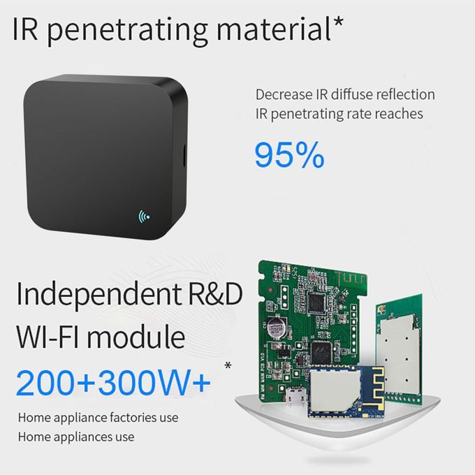 Super Size & Timing:Super mini body, and it occupies little space. Supporting intelligent scene control, with timing function: You can set timers to turn on/off your IR electronics. Keep peace of mind.