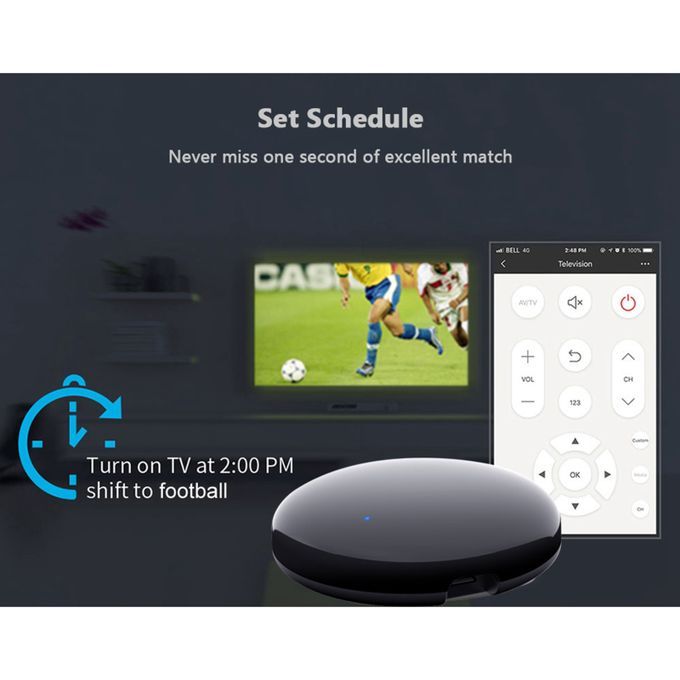 Super Size & Timing:Super mini body, and it occupies little space. Supporting intelligent scene control, with timing function: You can set timers to turn on/off your IR electronics. Keep peace of mind.