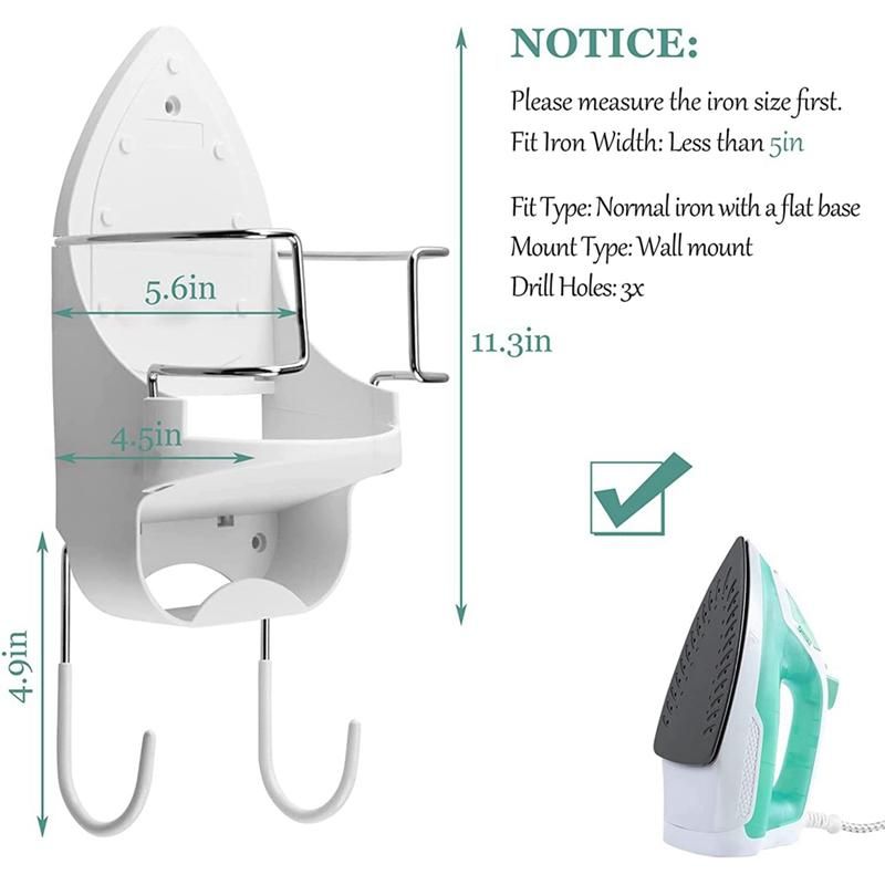 Heavy Duty Measures 142x61x51inch36x155x13cm suitable for most irons with ease for max 5 inches width The hook made of high quality steel wire has high capacity and can be used for hanging or small items