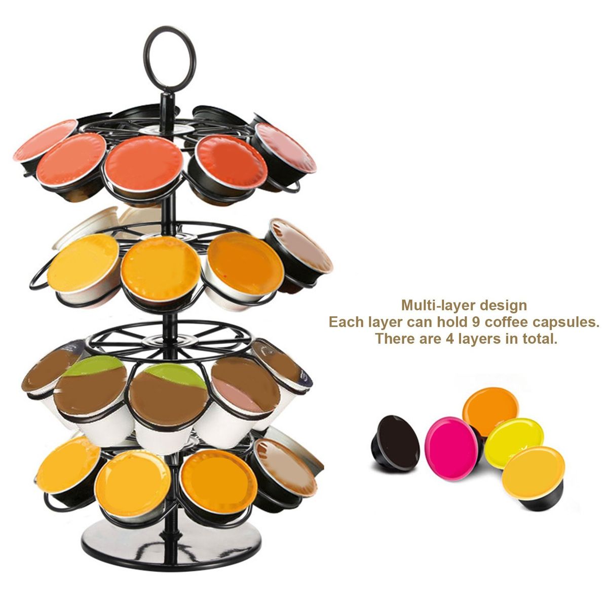36pcs: This coffee pod holder can hold 36 pcs coffee capsules.