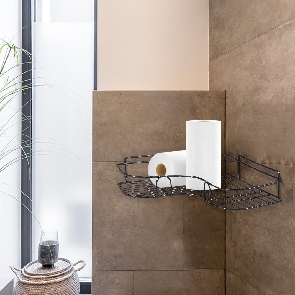 This corner shelf makes s are always at the ready when you need them. Made of durable iron material, it is easy to maintain by wipe cleaning with mild soap and water. It can offer storage space in the bathroom, kitchen, office, laundry, or craft room, which works in any corner space and helps you to maximize your storage options.