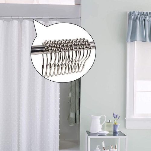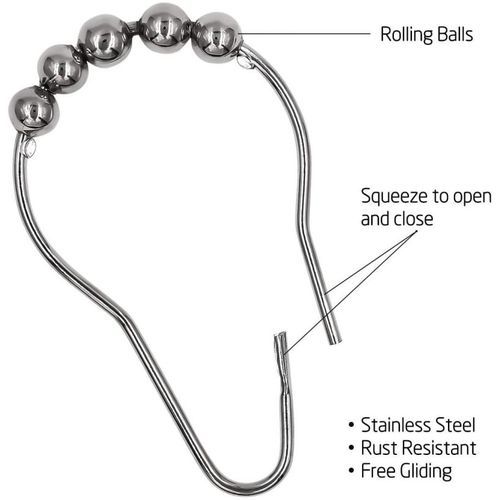 - Glides easily without friction on the shower curtain rod due to five special roller balls on each hook. These shower curtain hooks can prevent snagging and tugging when pulling your shower curtain and liner open and closed.