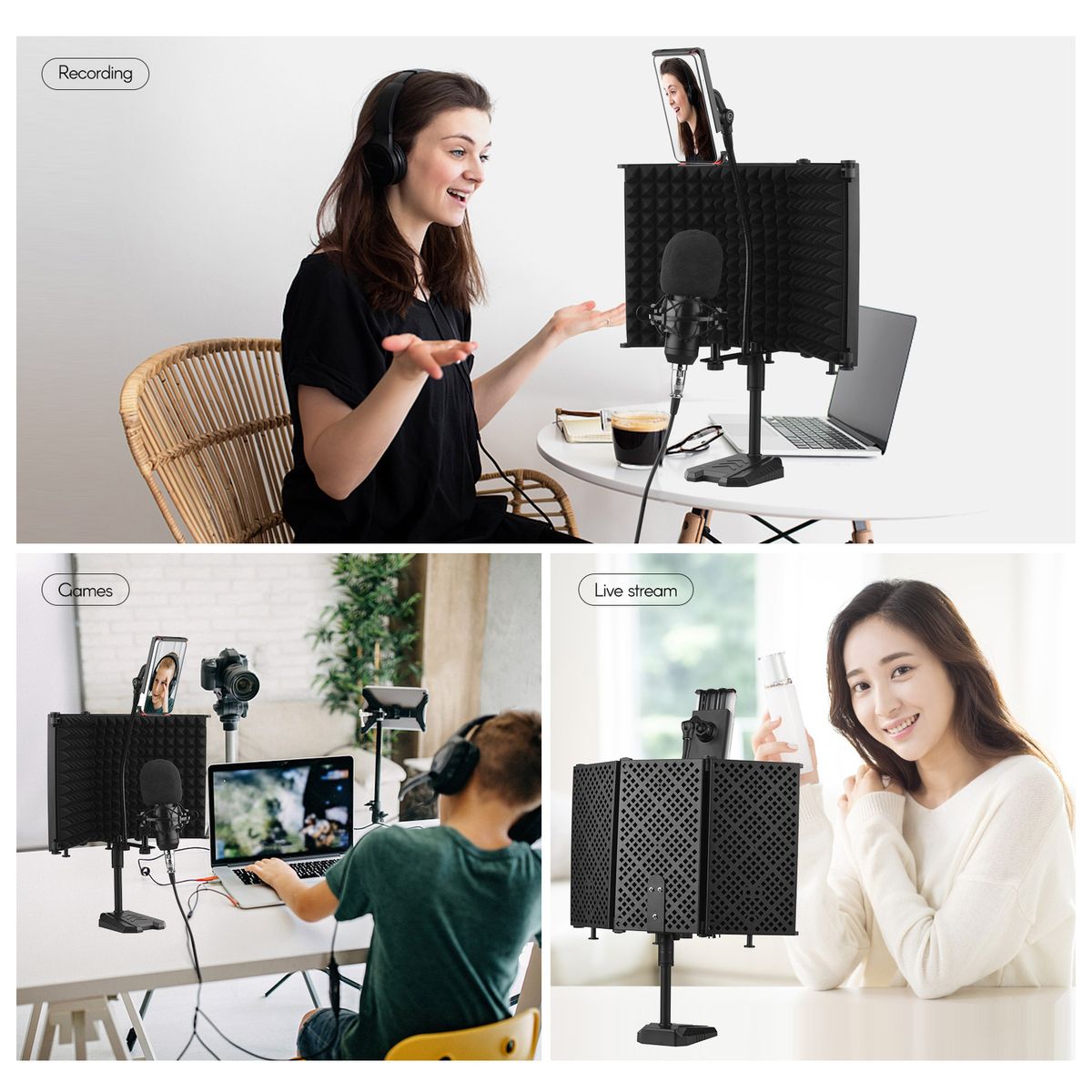 [Wide Application] Equipped with sturdy base, supporting rod of 2 levels of adjustable height, and extendable phone clip, perfect for live streaming, singing, studio professional recording, etc.