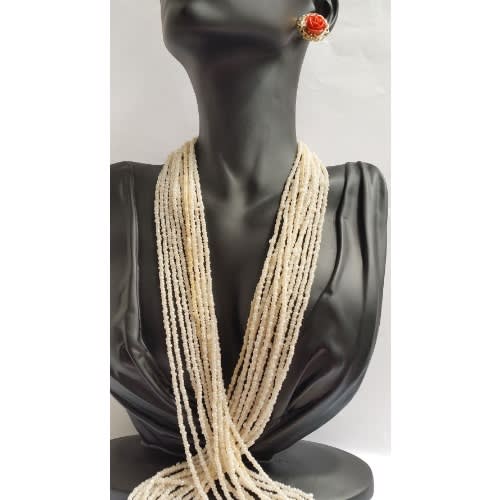Orange And Ivory Seedbead Necklace - 12 Strands - 91cm Long