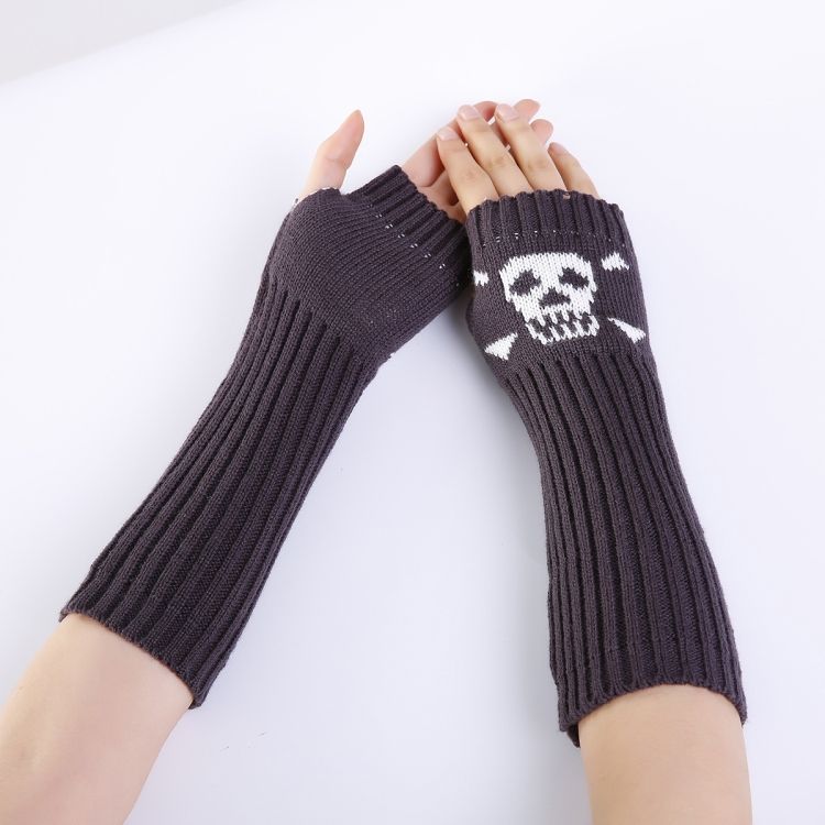 Jacquard Skull Fingerless Kni Warm Gloves
