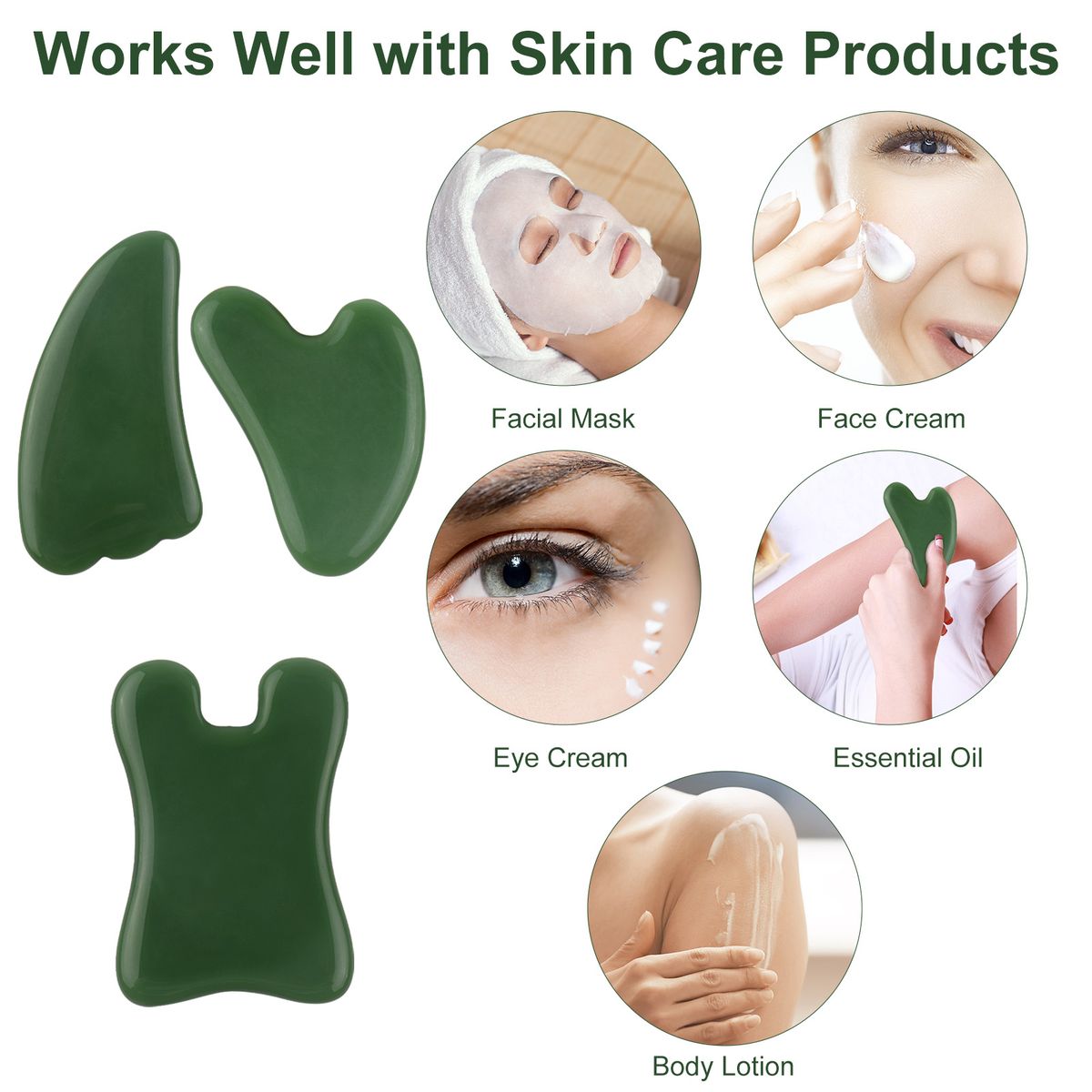 3 Face scrpaing boards in various shapes are included, comfortable to hold, you can treat your eye area or get in the corner of your nose with them.